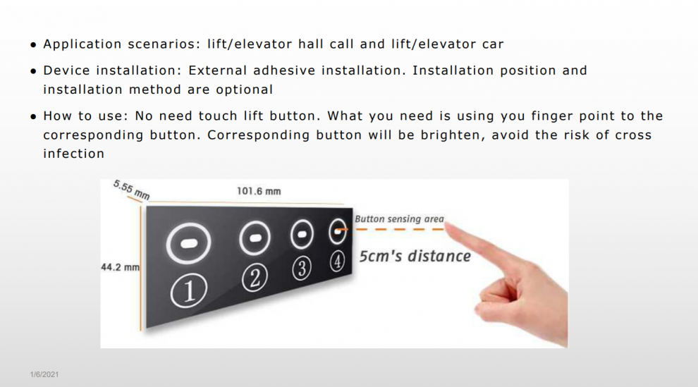 Induct floor button, and the corresponding floor button lights up and installed at Changi Airport, DP World Dubai.